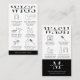 Ensure your clients know how to care and wash their wigs. with a custom wig aftercare instructions business card. This minimalist hairpiece care guide includes icons and care tips for wigs (can be used for natural hair or synthetic wigs) as well as instructions on how to wash a wig. Add your logo and business details to this modern black and white wig care guide and add it to your parcels, perfect for your hair boutique!