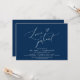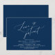 This is the Wedding party invitation Rescheduled (postponed / postponement) card (Love is patient), change the date card, in the modern minimal romantic simple clean design navy blue theme. It is the perfect way to make the event reschedule (save our new date) announcement to your friends and family.