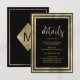 A modern minimalist luxury black and gold with elegant trendy gold handwritten typography. This glam wedding Details Card is the perfect print for any bride and groom's Wedding event. Customise this design with your details and monogram initial.