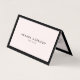 An elegant and refined design elevates your name or business name through minimal and modern styling. The thin black border is grounded on a pastel pink background to give a luxury feel to this classic folded business card design template. © 1201AM CREATIVE
