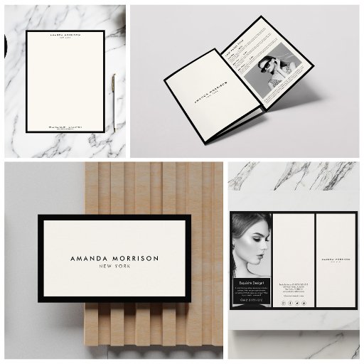 An elegant and refined design elevates your brand on this professional tri-fold brochure. Your name or business name is minimally styled on the front, while the ivory and black colour palette keeps the overall design classic and clean. Update the customisable text to fit your brand, and personalise the details and stock photos throughout the brochure for your own usage. These 5x7 brochures are the perfect size to display your price lists and menu of services, or describe your product line. A great marketing piece to hand out to potential clients to quickly introduce your business. Great for trade shows, salons, jewellery brands, small boutiques, luxury items, realtors and more. Please contact the designer for help with special typesetting or layout variations. Art and design © 1201AM Design Studio | www.1201am.com