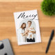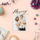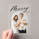 Celebrate the season with this modern Christmas photo card, featuring the word "Merry" in bold black script at the top of the design on a transparent acrylic background. Your vertical photo is beautifully displayed inside an elegant arch frame, adding a touch of sophistication to your holiday greetings. Personalise this custom acrylic Christmas card with your family name and year for a truly unique and meaningful holiday card. Perfect for sharing your festive cheer, this stylish design combines modern elegance with a personal touch.