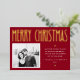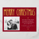 Christmas foil photo greeting card with single photo template, custom name flanked by stars and retro text "Merry Christmas” in real foil. Deep red or custom color background.
