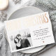 Christmas foil photo greeting card with single photo template, custom name flanked by stars and retro text "Merry Christmas” in real foil. White or custom color background.