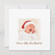Send the exciting news of your Christmas baby, in modern minimalist style. A square photo is centred on the front in square format with lots of white space around for a contemporary touch. Simply upload your favourite photo of your new arrival into the template placehholder to replace the sample picture. Beneath is the set typography Merry Little Christmas in a stylish informal script in gold. You can change the colour of this set text if you wish, as well as the background colour on the front and back. On the back, easily personalise the words to your own details.