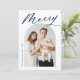 Minimalist Merry Navy Script 2 Photo Holiday Card
