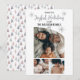 Simple, classy, understated and elegant "Wishing You A Joyful Holiday Season" three photo design with black and dusky purple text and a trio of faux silver glitter snowflakes on front and a watercolor abstract tree pattern background on back. Top photo is tapered in an updated, stylishly sophisticated modern design. Composite design by Holiday Hearts Designs (rights reserved). Template placeholder courtesy various photographers via Pexels.
