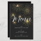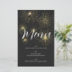 Modern black and gold fireworks minimalist party menu with a calligraphy font. Pair with our matching fireworks party invitations.