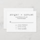 Modern wedding RSVP card with a simple design featuring your names in a large black sans serif font, over a white background. The template includes a line for the number of guests attending. The backside has your two initial monogram with a plus sign. These contemporary RSVP cards perfect for a minimalist wedding.