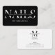 Minimalist nail salon business cards in modern black and white design with space for your logo or monogram. A simple, yet elegant and chic business card design for nail artists, nail salons, nail boutiques and more. With fully editable text and colours you can make your fully custom nail tech business cards.
