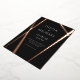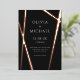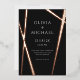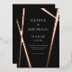 These uber minimalist modern 5"x7" wedding invitations features a sleek rose foil line design on a black background with placeholders for the wedding couple first names, date, time, venue, venue address and reception.