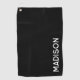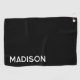 Play your game in style with this Minimalist Modern Black White Personalised Women's Golf Towel. Name is in large bold white minimalist lettering vertical on lower right corner. Customise the black background to any colour.