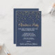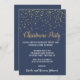 This minimalist modern blue confetti christmas party invitation is perfect for a classy Christmas or holiday party celebration. The design features festive gold confetti with elegant gold and white calligraphy on a blue background.