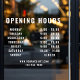 Enhance your storefront with our Minimalist Modern Business Opening Hours White Sign. Designed for a sleek, professional look, this sign features a clean, easy-to-read design that seamlessly blends with any business aesthetic. The white background and modern typography create a sophisticated touch, ensuring clear visibility for customers. Perfect for glass doors, windows, or walls, this versatile business hours sign keeps your clients informed with style. Elevate your space with a simple yet impactful signage solution!