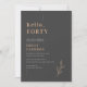 Invite guests to your wedding with this simple and modern 40th birthday invitation, which features a clean font on charcoal background. This invitation is perfect for any season. For more advanced customization of this design, e.g. changing layout, font or text size please click the "CUSTOMIZE" button above. Please contact me for any questions!