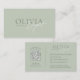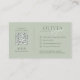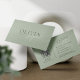 This sophisticated business card design features a calming pastel green background on both sides for a cohesive, minimalist look. The front showcases an elegant mix of modern typography and flowing script, creating a truly unique and high-end brand presentation. The back maximizes utility with a clean layout for contact details, plus space for a scannable QR code and social media icons, making it easy for customers to connect instantly.