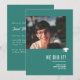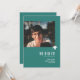A modern minimal chic 2026 graduation party invite in tasteful teal, featuring fully customizable elements like the photograph and name and graduation information on the front, and on the back the party details in elegant classic scripts.
