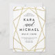 This stylish wedding invitation features a faux gold, geometric design on a sharp white background.