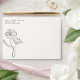 Wedding Envelope | A timeless beige backdrop sets the tone, while a delicate line art flower graces the design, its petals adorned with gentle dabs of muted sage spot colour, adding a subtle touch of nature's beauty. The unique touch of text arranged perpendicularly adds a modern twist to the classic layout, promising an event that balances tradition with contemporary aesthetics. - artwork by ©WhimsicalArtwork™