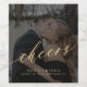 Modern romantic chic moody black wedding wine labels template with your custom photo in trendy faux vellum dark transparent overlay with faux gold classy hand lettered cheers calligraphy script. +++++++++++ Easy to personalise with your details and engagement picture! ++++++++++ Suitable for any season elegant wedding theme.