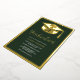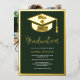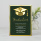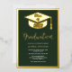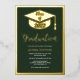 A Minimalist modern simple real gold foil graduation photo with geometric border frame, a graduation cap and an elegant script calligraphy with dark forest green.