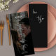 Trendy dark photo overlay black and white minimalist typography script custom text and whimsical names script template wedding menu card. ++++++++ Personalise it on the front and back!