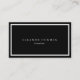 A simple elegant business card with your details set in a modern white text sat on a black background. Add your contact details on the reverse. Designed by Thisisnotme