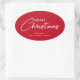 Minimalist Modern Red White Script Christmas Oval Sticker