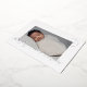 A beautiful single photo foil birth announcement in a minimalist and modern style. Features a tiny foil heart accent surrounded by baby's birth date and stats. Baby's name is written in a modern script font also in foil.