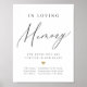 Modern script minimalist in loving memory sign in charcoal black and white with colour editable heart shape, simple and elegant.