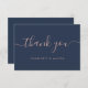 Minimalist Modern Script Navy Blue and Blush Thank You Card