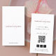 A modern chic white and pink minimalist personalised business card for anyone. A simple and professional way to introduce your business. Personalise with your business QR code and details to create your own unique elegant white business card. Customise even further with a custom colour background or font. Customise your own social media icons to suit your needs.