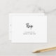 These elegant, minimalist wedding response postcards feature modern script typography and clean, sans serif text for a simple and stylish black and white design you will love. There is room to add your guests options for meal choice of entrée or dinner choice. Text is kept away from the top and bottom edges of the back of the postcard, to lessen the chance of it being covered on the top and bottom by postal markings.