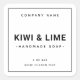 Modern, minimalist product label with a thin black or custom colour border. Fonts and colours are customisable. Upload your own logo, move and resize elements and text with the customisation tool.