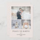 These elegant and minimalist style holiday cards feature simple modern black text, with room for three of your personal photos, on a soft blush pink background.