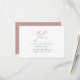 This chic and minimalist RSVP card features a clean white background with modern calligraphy accents in soft dusty rose and charcoal grey. With clearly defined options for attendance and meal preferences—including vegetarian, vegan, and gluten-free—it’s the perfect complement to a modern or romantic wedding invitation suite. Elegant and easy to customise for any couple’s celebration.