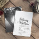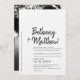 Modern clean lines simple black and white text left ranged vertically and bold first name calligraphy script wedding invitations. Perfect for a simple minimal or modern wedding. Edit this invitation with your own names, wedding details and your own couples photo on the reverse. Other matching items are available. Designed by www.mylittleedenweddings.com
