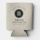 Minimalist monogram can cooler in simple black and beige, with modern typography style. Personalize with dad's initial, name, a short greeting, kids names, and year of gifting. Perfect for Father's Day gift or birthday gift for Dad.