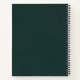 Modern notebook features a minimal design in a dark green colour palette. Custom name presented in the lower right-hand corner in stylish simple font with coordinating monogram medallion.