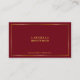 Minimalist Monogram Gold Frame Red Maroon Business Card