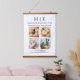 Modern Minimalist Business Hanging Tapestry Sign with 4 Photos. Black & White or choose your custom colours. Perfect for retail companies, small business shops, mall kiosks, trade show and event booths, hospitality, salons, spas, bakeries, cafes, restaurants, bars and more. Easy to personalise with your monogram initials, business name and information, photos, slogan or even add your logo or personal brand design.