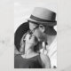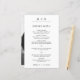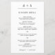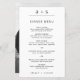 Modern photo wedding menu with a simple design featuring your monogram, names and date in a black sans serif font, over a white background. The backside has your favourite picture. These cheap wedding menus are printed on sheets of paper for a budget friendly option and are perfect for a minimalist style wedding.
