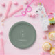 Minimalist Monogram Sage Green Wedding Paper Plate