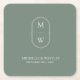 Minimalist Monogram Sage Green Wedding Square Paper Coaster