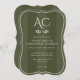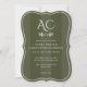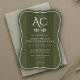 Minimalist Monogram Striped Olive Green Wedding Invitation