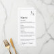 Add a modern, refined touch to your reception tables with this white minimalist monogram wedding menu. Featuring the couple’s initials in a sleek monogram design, elegant script accents, and contemporary typography, this menu offers a clean layout that beautifully presents your dinner options. Perfect for minimalist wedding themes, this monogram wedding stationery piece blends style and sophistication, giving your guests a tasteful preview of the reception’s cuisine.