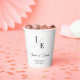 Serve up style with these chic white minimalist monogram wedding paper cups featuring a timeless of the bride and groom’s initials. Crafted with a simple layout, elegant script, and modern typography, these cups are a perfect match for minimalist wedding themes and monogram wedding décor. Whether you're hosting a cocktail hour, rehearsal dinner, or wedding reception, these stylish beverage supplies bring a personalised and polished touch to your drink station. A subtle yet elegant way to tie your monogram into every celebration detail.