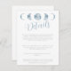 The text on the card is a mix of light grey block font and blue script font, creating a harmonious and visually appealing look. This minimalist and crisp design is perfect for couples who appreciate the beauty of the night sky, astronomy, and the moon phases. Whether you're planning a celestial-themed wedding or simply love the elegance of this design, this enclosure card is a beautiful addition to your wedding stationery suite.