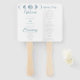 The text on the program fan is a blend of light grey block font and blue script font, creating a modern and elegant look. The front of the fan includes essential details such as the word "Welcome," the bride and groom's names, wedding date, location, and order of the ceremony. On the back of the fan, you can personalise it with the names of the wedding party, adding a personal touch to your program.