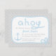 A minimalist, simple and classy invitation for that nautical theme baby shower. A clever use of the blue rope to form the border and the word "Ahoy" which is used in sailing. An anchor a the corner with a tiny heart at the top. Grey background with white polka dots pattern. For mummy to be who is expecting a baby boy. Personalise easily with party details.